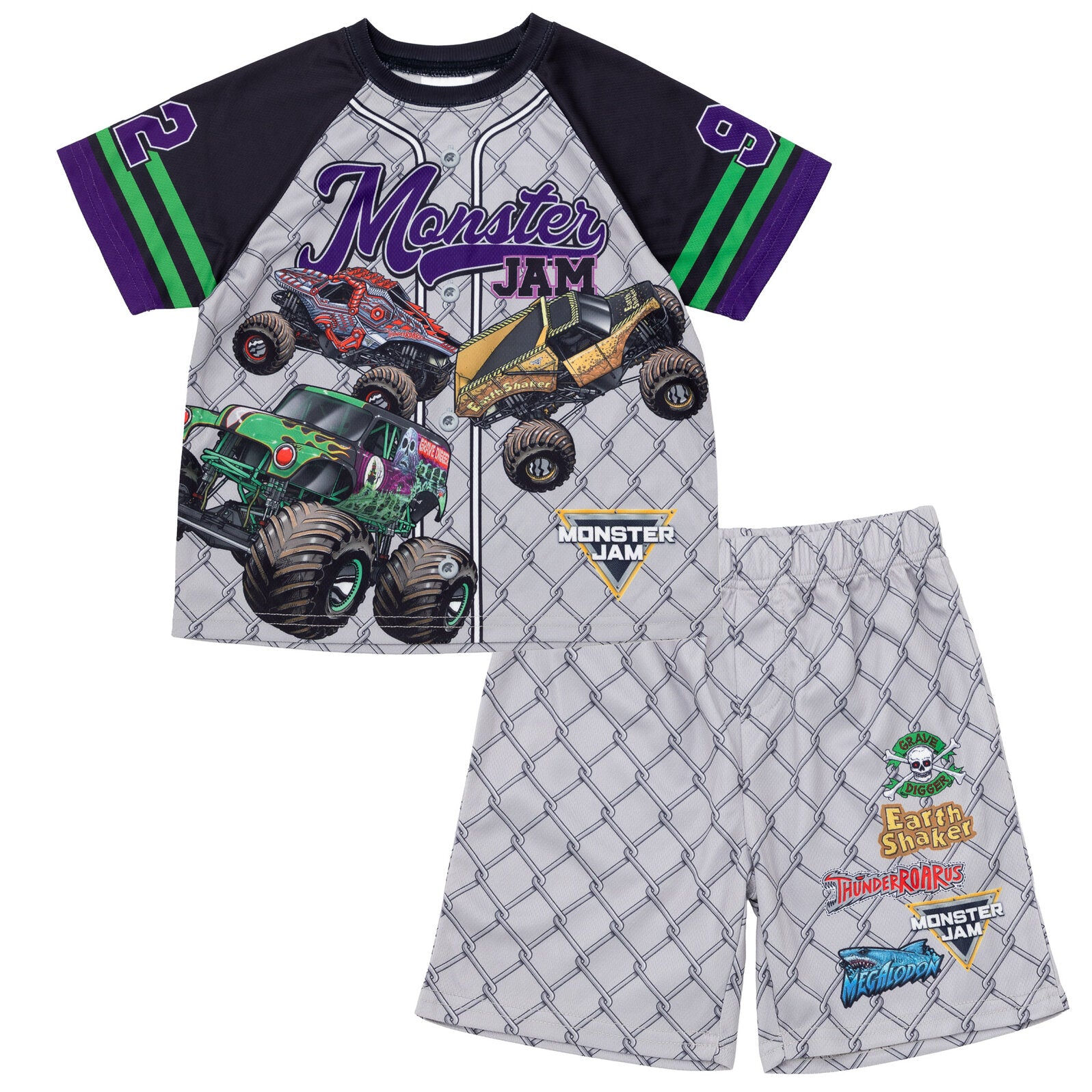 Monster Jam Athletic Mesh Baseball Jersey T-Shirt and Shorts Outfit Set