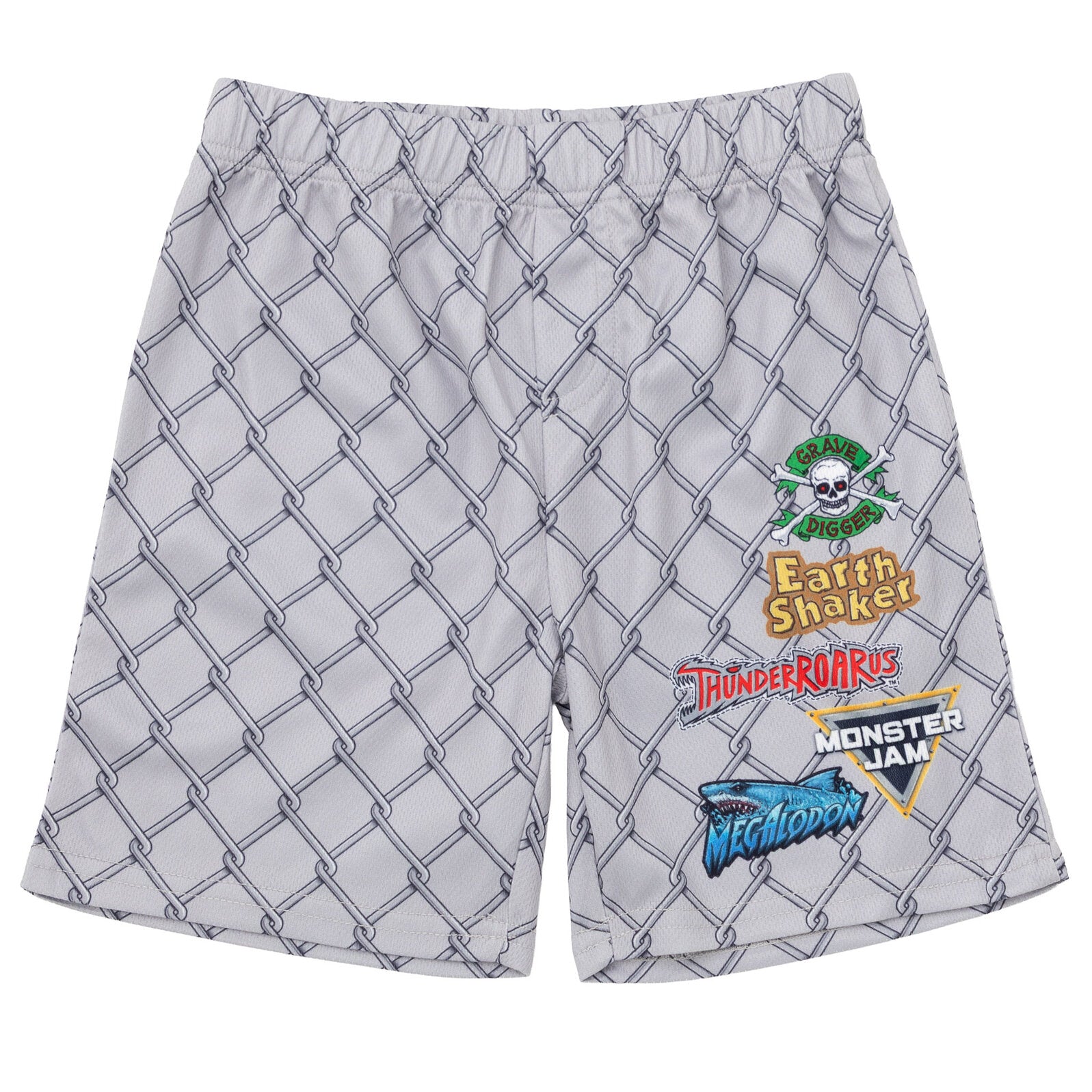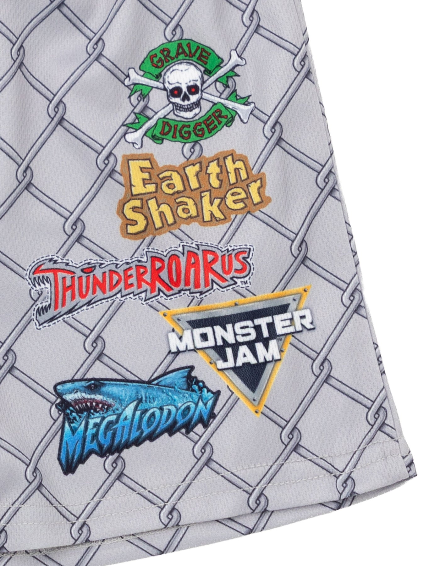 Ready?Set?Go! Jump into the action-packed world of Monster Jam, where the competition is fierce, the stunts are epic, and the trucks are giant. Your kid is ready to race to the finish line in this cool Monster Jam sports set! This stylish short sleeve baseball tee and mesh shorts features bright colors and cool artwork of Grave Digger, Megalodon, Digatron, and Maximum Destruction that your monster truck fan will be excited to wear! Made of soft and breathable mesh fabric for all day comfort, this fashionable Monster Jam baseball jersey and shorts set is the perfect outfit for adventure and play!