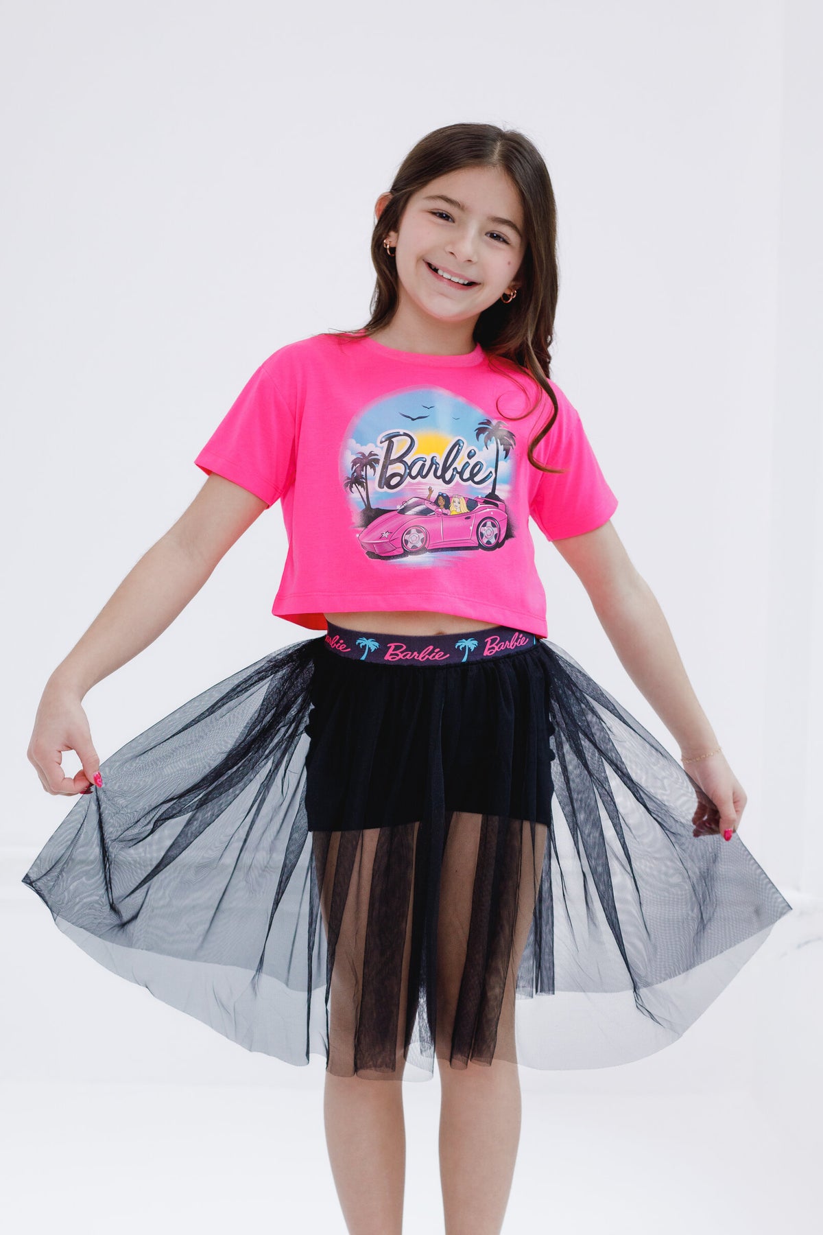 Barbie Boxy Drop Shoulder T-Shirt and Mesh Tulle Skort