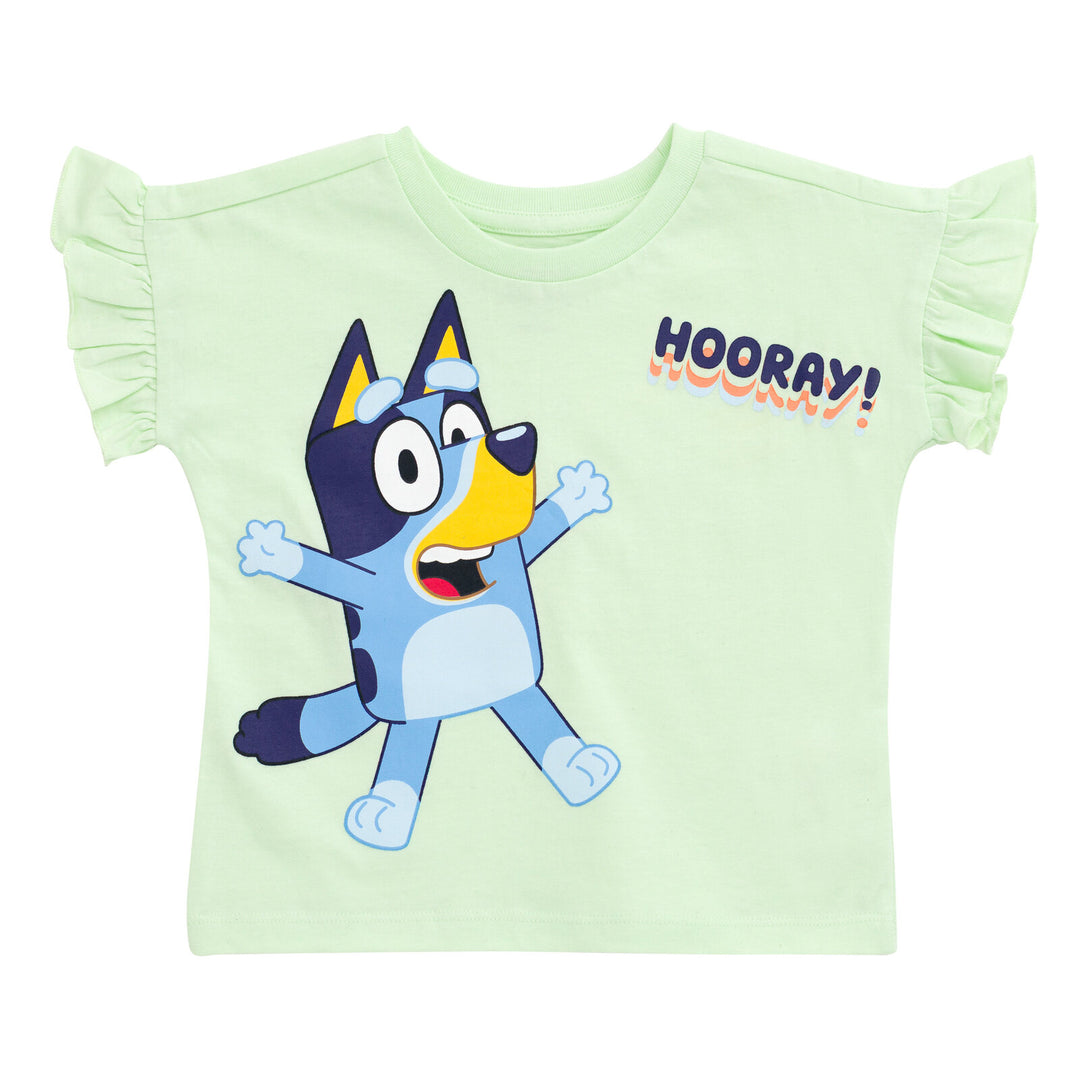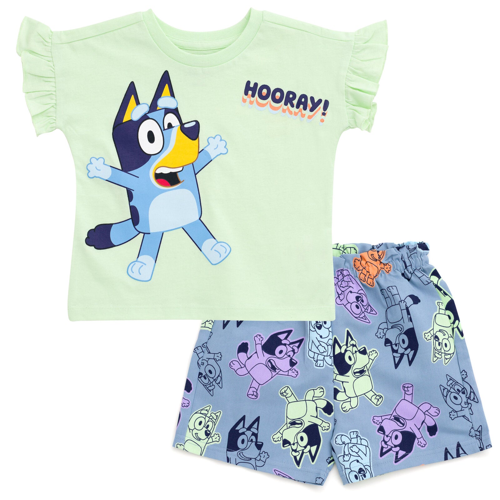 • Officially licensed Bluey Bingo newborn and infant short sleeve graphic tee shirt and shorts