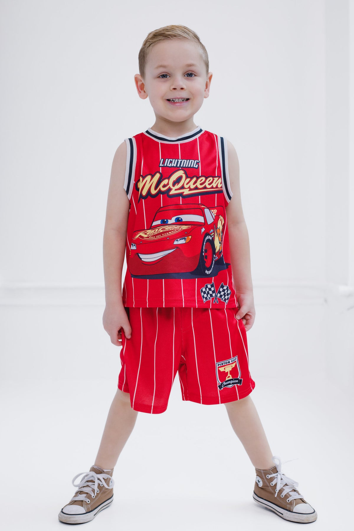 Disney Cars Lightning McQueen Mesh Jersey Athletic Tank Top and Basketball Shorts Outfit Set