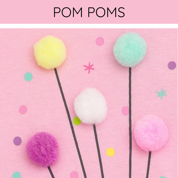 • Decorative Details: Pom Poms, Screen Print