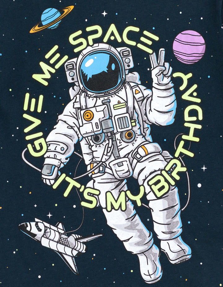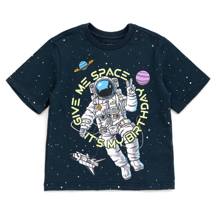 - Vibrant Artwork: Short sleeve graphic tee featuring a cool out of this world screenprint design of an astronaut in space with the words "Give Me Space It's My Birthday" in shiny foil lettering